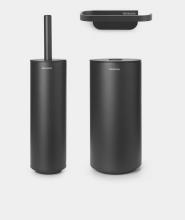 Ce super trio donnera du style à notre petit coin. Le lot d'accessoires de toilettes MindSet de Brabantia se compose d'une brosse de toilettes robuste et hygiénique et de son support. Avec ce porte-rouleau de papier hygiénique minimaliste, le papier toilette est toujours à portée de main et le distributeur de papier hygiénique peut contenir jusqu'à deux rouleaux en toute discrétion. Tout le nécessaire pour donner plus de cachet à vos toilettes.
