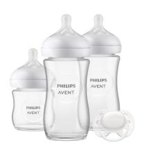 Coffret de 3 biberons Natural response verre + 1 sucette