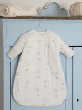 Pour que bébé dorme paisiblement optez pour cette gigoteuse avec manches amovibles. - Gigoteuse en gaze de coton - 100% coton - Manches amovibles par pressions - Ouverture par pressions au épaules - Ouverture zippée sur le côté et à la base - Base repliable par pressions - Imprimé 'nuage' all-over - Indice de chaleur TOG 2 pour une pièce dont la température est inférieure à 18 degrés