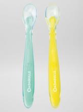 Un lot de 2 cuillères pour en avoir toujours une sous la main ! - Lot de 2 cuillères 'Badabulle' - En silicone - Longueur : 16 cm - A partir de 3 mois - Passe au lave vaisselle - 0% de bisphénol A