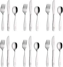 Exzact Couverts enfant en inox 18 Pièces: 6 x Fourchettes, 6 x Couteaux, 6 x Cuillères (Chien-Chat-Lapin).