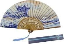KAKOO Soie Pliant Ventilateur Avec Bambou Côtes Japonais Kanagawa Vagues Pattern Design Hand Held Gorgones Pour Danser le Mur de Bureau Cosplay Mariage Fête Les Accessoires Maison Décoration Bricolage : Amazon.fr: Jeux et Jouets