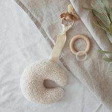 Un accessoire tout doux à la forme de lune, idéal pour garder la tétine de bébé à portée de main. Confectionnée dans une matière moelleuse et réconfortante, cette attache se noue facilement à la sucette grâce à son ruban solide. Déclinée en plusieurs teintes neutres et apaisantes, elle s’accorde parfaitement à tous les