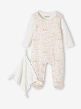 Ensemble naissance 3 pièces : combinaison + body + doudou en coton bio - rose poudré, Bébé