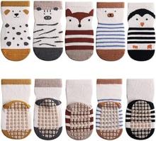 FedMois 5 Paires Chaussettes Antidérapantes en Coton Bébé Enfant Motif Animaux, Pingouins, 1-3 ans