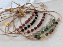Bracelet -Palet pierres fines Bracelet en pierres fines sur cordon Caractéristiques détaillées :• Taille des pierres : 3/4 mm • Taille du bracelet : ajustable Votre bijou sera livré dans un pochon en coton LéA et Moi 🚚 Livraison à domicile sous 6 à 7 jours ouvrés (pas d'expédition en août) ============