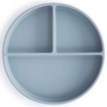 Avec l'assiette à compartiments en silicone avec ventouse de la marque Mushie, votre enfant pourra bientôt se mettre à table avec toute la famille.