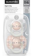 Suavinex, Lot de 2 Sucettes pour Nouveau-nés et Bébés 0/6 Mois, Sucettes Phosphorescentes, Idéal Nuit, avec Tétine Symétrique SX Pro en Silicone, Réversible, Douce et Souple, Night and Day, Rose