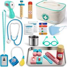 Sundaymot Malette Docteur Enfant Jouet, Medecin Outils avec Stéthoscope, Thermomètre, Seringue Infrarouge et d’Autres Accessoires en Bois, Jeu d'imitation Cadeau pour Fille Garçon Enfant 3 4 5 Ans : Amazon.fr: Jeux et Jouets