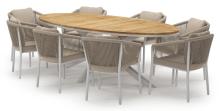 L'ensemble de jardin Pamplona présente une allure robuste et contemporaine. Son piètement croisé distinctif apporte une touche de caractère et de solidité au design. L’armature de la table de jardin est fabriquée en aluminium inoxydable, un matériau solide mais léger, facile à déplacer. La surface est lisse, ce qui empêche la saleté d’adhérer et facilite l’entretien. Le revêtement en poudre assure la résistance aux UV et aux intempéries de votre mobilier.