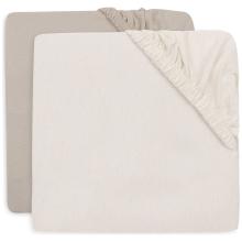 Drap housse pour matelas de parc beige, écru - Apportez douceur et praticité au parc de bébé avec le lot de 2 draps-housses en jersey Oatmeal-Sand de Jollein. Ces draps-housses doux et extensibles s’adaptent