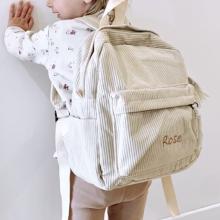 Sac à dos enfant en velours côtelé, utile pour la crèche et la maternelle. Personnalisable avec un prénom, intérieur avec poche à tirette.