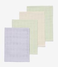Quatre gants de toilette hydrophiles pratiques pour le change.