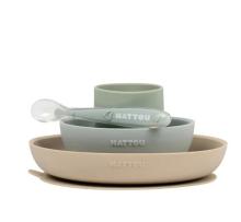 Coffret repas en silicone 4 pièces - Sable/Vert | Nattou