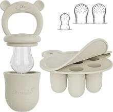 Set van 3 fruitspenen en 3 beige siliconen fopspeen met bijtring, fruit- en groentespeen ijsblokjesvorm met deksel Broemba : Amazon.com.be: Babyproducten