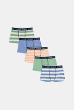3 boxers rayés et 2 boxers unis pour un confort parfait : les garçons sont tous d'accord ! Jersey doux et extensible. Taille élastiquée, logo Okaïdi. Devant doublé. Coutures flatlock. Sous-vêtements garçons. Lot de 5.