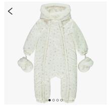 Combi-pilote manches longues en jersey avec doublure unie en sherpa. Coloris écru. Imprimé fleurs all-over. Capuche avec bordure effet fourrure écru. Double ouverture zippée et discrète à l'avant. Protèges-menton. Deux types de finirions selon l’âge