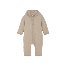 Combinaison en laine polaire mérinos, chaude et douce. Capuche à oreilles, revers mains/pieds (jusqu’à 80), bords-côtes confortables et zip sécurisé pratique.