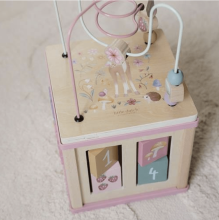 Ce cube dâactivités crée de nombreux défis pour votre enfant. Chaque côté est décoré avec des éléments de la collection Fairy Garden et offre des activités éducatives : le tri de formes, des engrenages qui tournent et, sur le dessus, une belle spirale de perles. Les enfants développent leur motricité fine avec chaque a