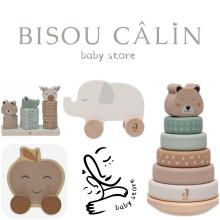 Petits jeux en bois, jeux pour le bain, etc... Ou parce qu'il n'est jamais trop tôt pour commencer: des livres!