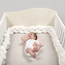 Protégez le lit de votre enfant avec notre tour de lit tressé 4 épis modèle beige.