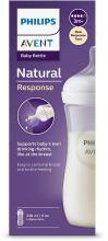 Biberon avec tétine qui fonctionne comme un sein afin d'améliorer le moment de tétée du bébé. Favorise le rythme unique de succion, d'ingestion et de respiration. Réduit les risques de coliques. Tétine débit 4.