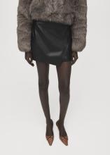 Cette pantalon style jupe-culotte en similicuir présente un coupe midi et évasée. Son style croisé et sa taille normale sont complétés par une fermeture zip latérale