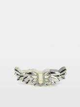 Jupe-pantalon taille haute avec zip latéral dissimulé dans la couture. Détail d'une application métallique sur le devant.
