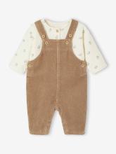 Ensemble 2 pièces naissance salopette en velours côtelé + T-shirt manches longues - écru, Garçon