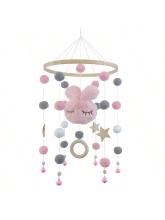 Carillon de vent en bambou sculpté avec oreilles de lapin et pentagramme, décoration de chambre d'enfant, décors de baby shower et de famille, cadeau