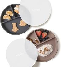 Moonkie Assiettes à Succion pour Bébés et Jeunes Enfants | Assiettes à Séparation en Silicone sans BPA avec Couvercle | Lavable lave-vaisselle - 2 Pack(Warm Taupe/Dark Grey)