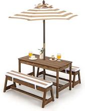 COSTWAY Table de Pique-Nique pour Enfants avec Parasol Réglable, Salon de Jardin en Bois pour Enfants avec Coussins, Table d’Activités Extérieures Intérieures, 89 x 44 x 50 cm (Marron) : Amazon.com.be: Jardin