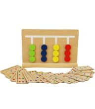Superbe puzzle en bois pour enfants et adultes. Plateau en bois de haute qualité avec 12 disques de quatre couleurs vives (3 disques de chaque couleur) fixés sur le plateau et coulissants sur les rails. 18 modèles de cartes en bois, soit 18 combinaisons de disques colorés, sont inclus. Amusant et idéal pour développer l'observation, la pensée critique et stratégique, la résolution de problèmes et la coordination œil-main des enfants. Idéal pour la motricité des bébés.