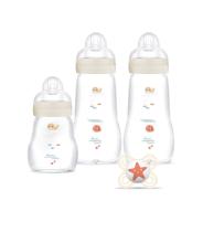 Découvrez ce coffret biberons Lin en verre de la marque Mam. Le kit idéal pour la venue d'un nouveau-né ! Comprend 1 biberon 170ml, 2 biberons 260ml et une sucette naissance. Livraison rapide et soignée....