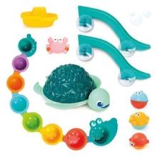 Offrez à bébé le coffret de bain XXL LUDI : 16 pièces ludiques (tortue lumineuse, toboggans, cups pluie) pour éveiller motricité et imagination.