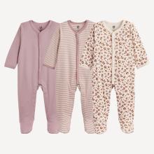 Lot de 3 pyjamas 1 pièce, en coton, motif léopard et à rayures - 3 mois