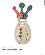 Fini de se salir les vêtements grâce à ce bavoir avec bac récolteur de Mushie. Super sympa avec les petits arcs-en-ciel !