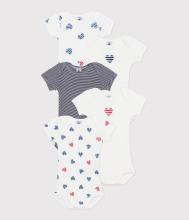 Lot de 5 bodies manches courtes en coton cœurs rayés bébé