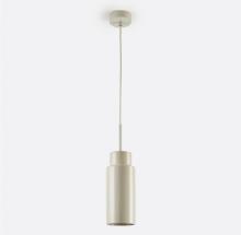 Suspension en céramique avec son équipement en textile et métal blanc.
