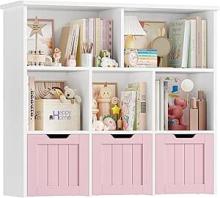 FOREHILL Bibliothèque de rangement pour jouets pour enfants, 5 étagères ouvertes, 3 tiroirs avec roulettes, pour chambre d'enfant, salle de jeux, rose + blanc, 100 x 33 x 89,5 cm : Amazon.com.be: Cuisine et maison