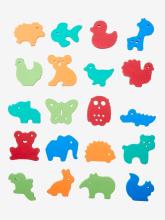 Stickers de bain en mousse + filet de rangement multicolore - Contenus dans un filet de rangement très pratique, ces petits animaux en mousse colorés sont à coller sur les parois de la baignoire