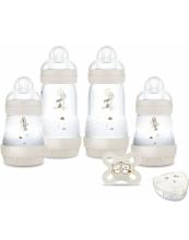 MAM Lot de 8 Biberon Easy Start Anti-Colique avec tétine en silicone Skinsoft, 1 Sucette Start Nano, 1 bec extra doux et poignées, neutre