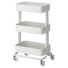 RÅSKOG desserte, blanc, 35x45x77 cm L'idéal pour une cuisine ou n'importe quelle pièce nécessitant un espace de rangement supplémentaire. Roulettes verrouillables pour une meilleure stabilité.