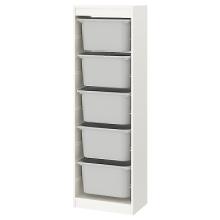 TROFAST Combinaison structure + bacs, blanc/gris, 46x30x145 cm