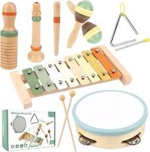 KUOFANY Instruments de musique pour enfants à partir de 3 ans, jouets en bois avec xylophone, triangle, maracas, tambourin, bois de résonance et clarinette, gris, adaptés aux enfants : Amazon.com.be: Jouets