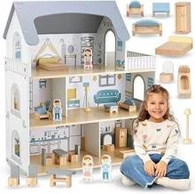 Mamabrum Maison de Poupée en Bois avec Terrasse et Accessoires, Maison de Poupée à 3 Niveaux, 5 Pièces, Maison avec Meubles, Ensemble de Jouets pour Poupée, Hauteur 70,4 cm, Couleurs Subtiles : Amazon.fr: Jeux et Jouets
