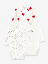 Lot de 3 bodies croisés manches longues coeurs bébé naissance en coton bio PETIT BATEAU blanc -
