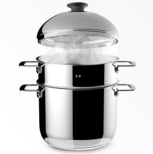 Fiche techniqueContenance : 8 LDiamètre cuve/tamis : 24 cmHauteur tamis : 9,6 cmHauteur cuve : 18,5 cmHauteur totale : 36 cmComposition : Inox 18/10Poids total : 3,2 kgNous conseillons cette taille standard pour 2 à 6 personnes.Le Vitaliseur Grand Chef est livré sans accessoire.Le Grand Chef peut être utilisé sur tout type de feu (induction, vitrocéramique, gaz, électrique).Livré avec un mode d'emploi et le Hors-Série 95°, le magazine de la vapeur douce !La soupière inox n'est pas vendue seule en dehors du Pack, mais le moule en inox oui, au 04 94 01 22 61.Une question reste sans répon