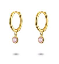 Boucles d’oreilles en argent plaqué or 18ct, anneau, pendentif zircon rose, rond