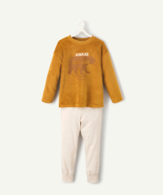 Pyjama long garçon en velours ours camel et beige - cathay spice | Tape à l'oeil